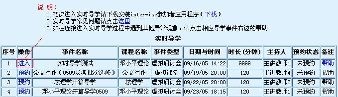 6. 到了课程导学开始的时间后,点击左侧“进入”按钮,进入到实时导学的事件。