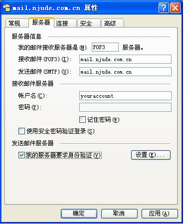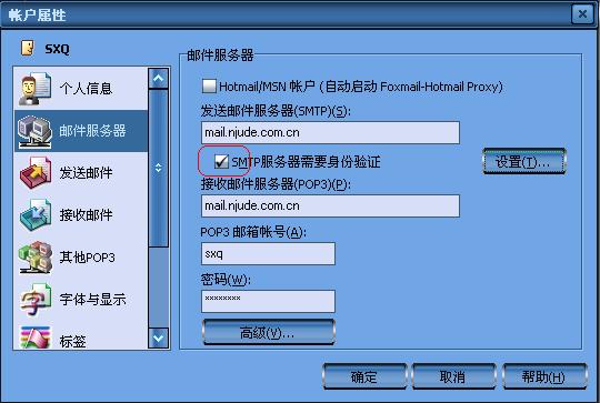 POP3和SMTP服务器设置(包括SMTP验证选项设置)如下: